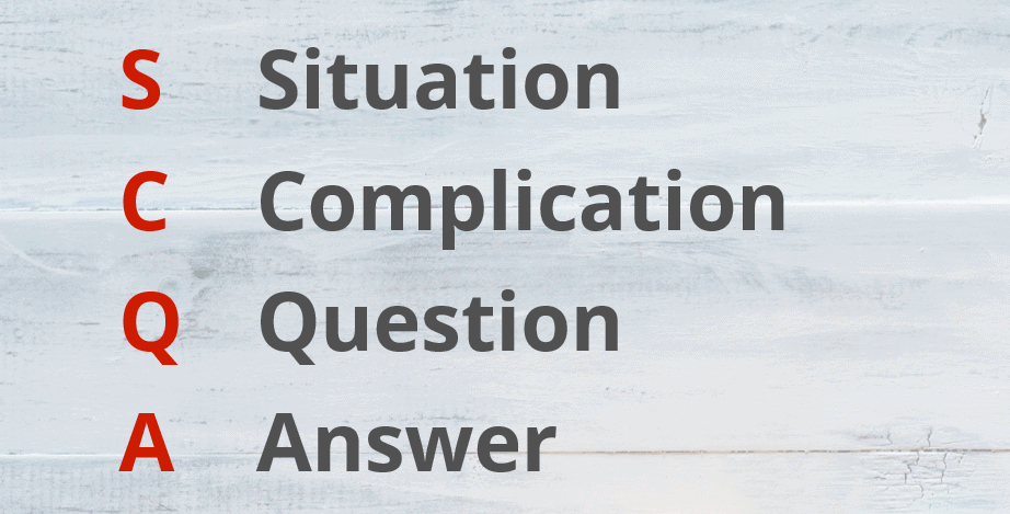 Originally, the SCQA was developed to improve consultancy reports. Barbara Minto introduced the framework in her famous book The Pyramid Principle.